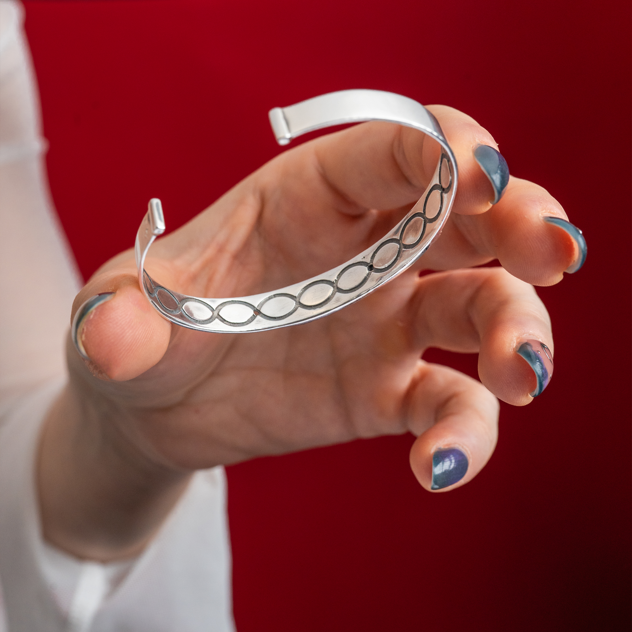 Formato abierto: Al no ser un círculo cerrado, el brazalete permite que tu energía fluya libremente, liberando el exceso de carga (estrés/ansiedad) y recargándote cuando estás bajita de fuerzas. Actúa como un regulador natural.