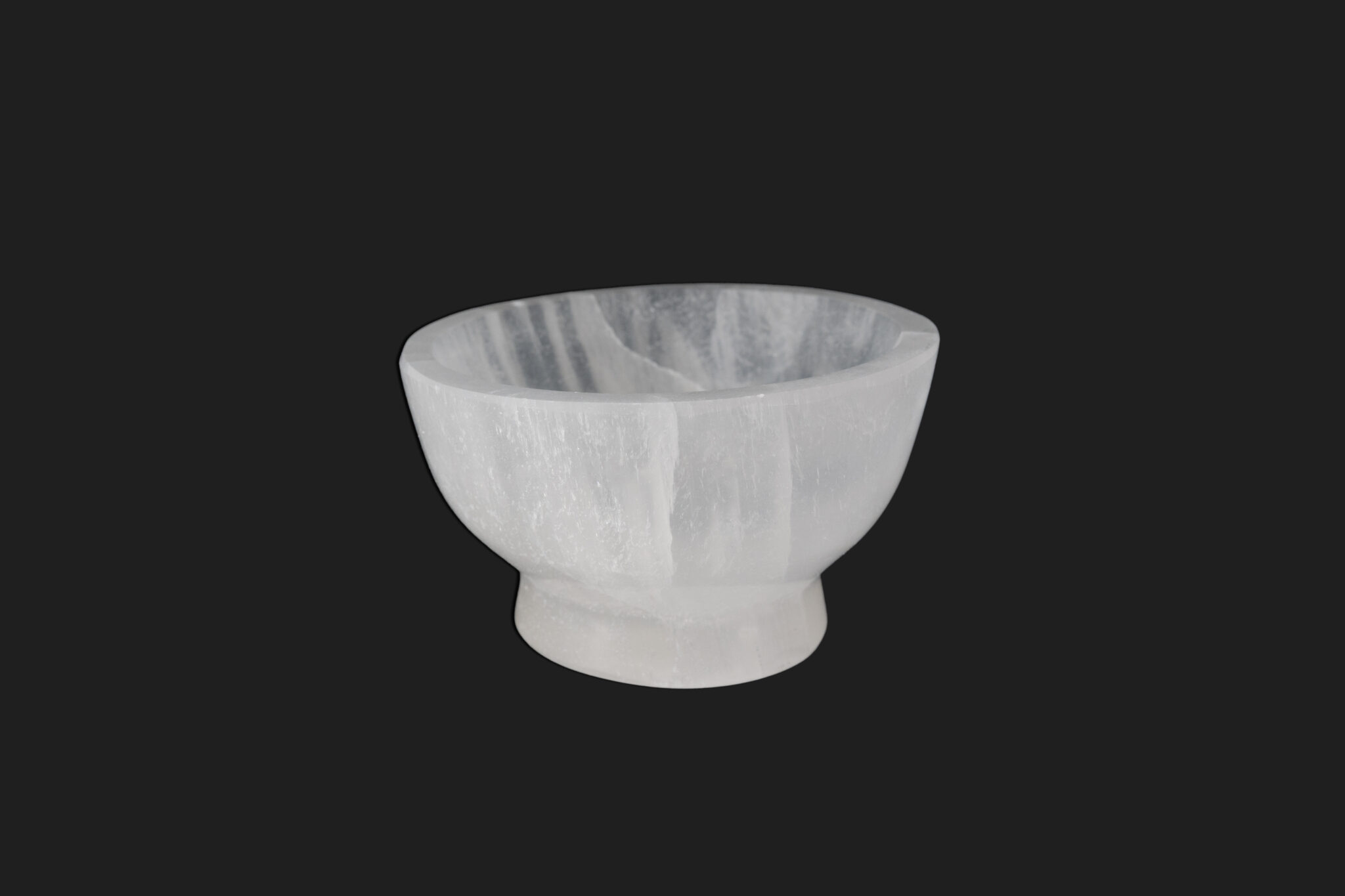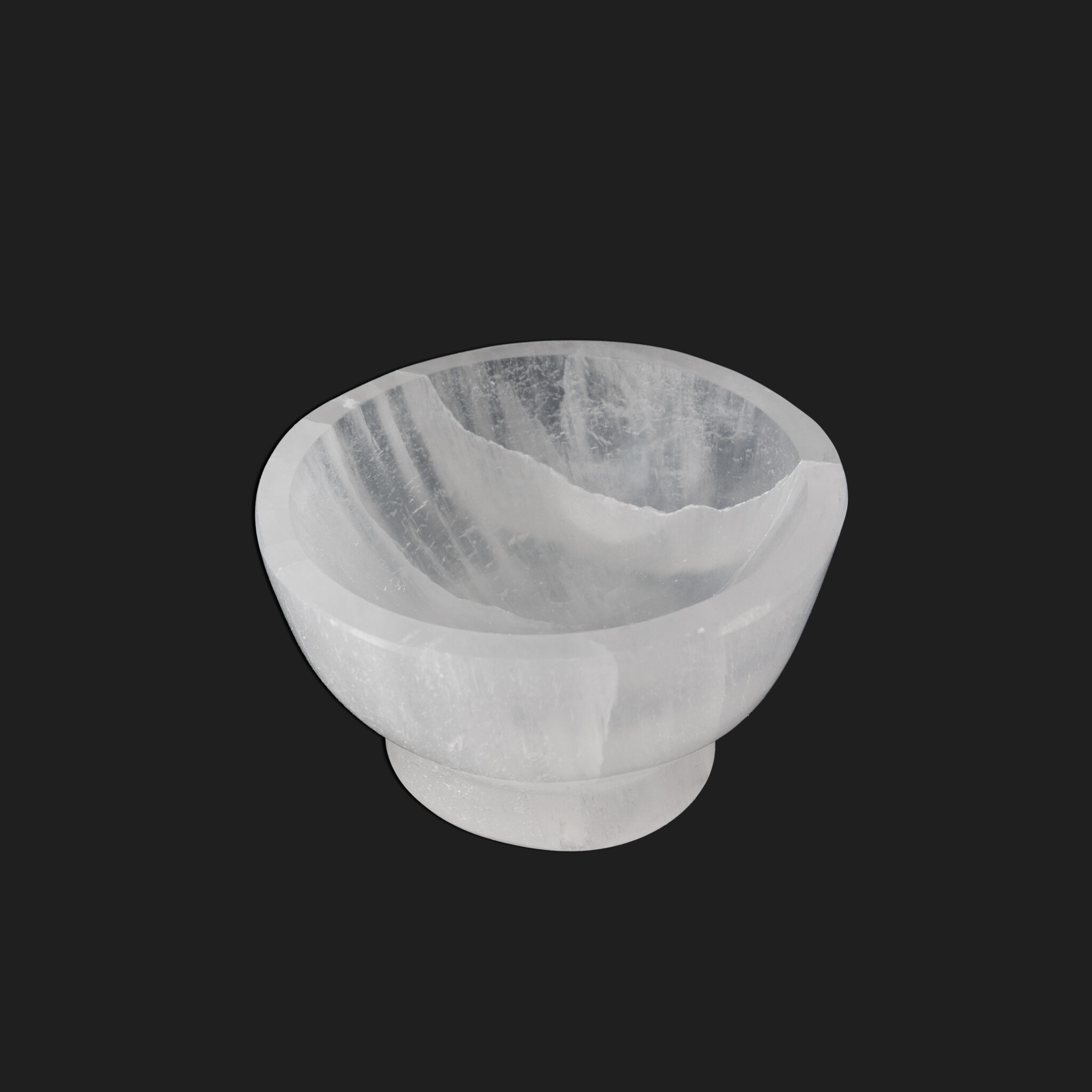 Dale altura y elegancia a tu práctica espiritual. Con el cuenco de selenita con base, tus cristales descansan en un trono de luz.
