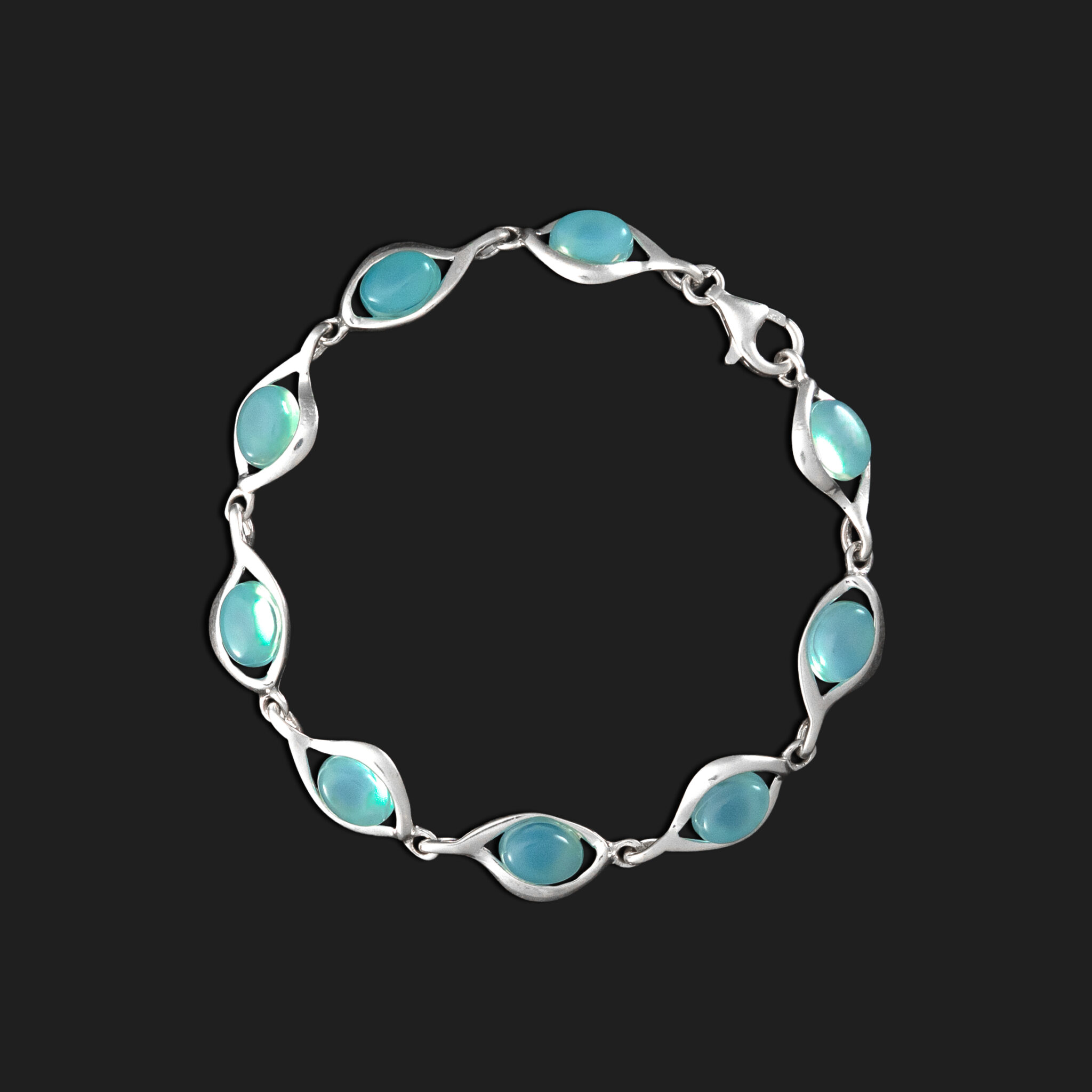 Pieza elaborada en Plata de Ley con Calcedonia aqua natural.