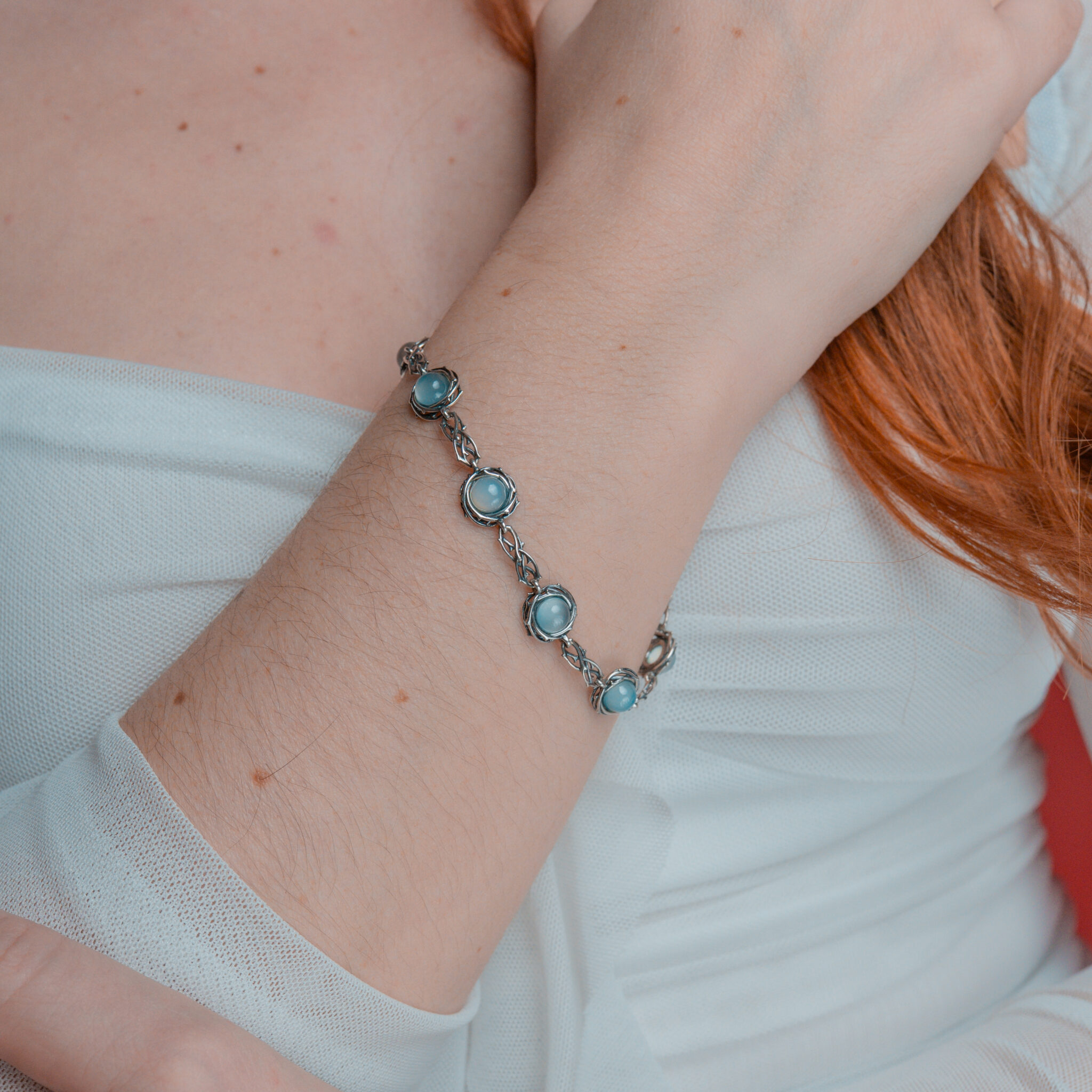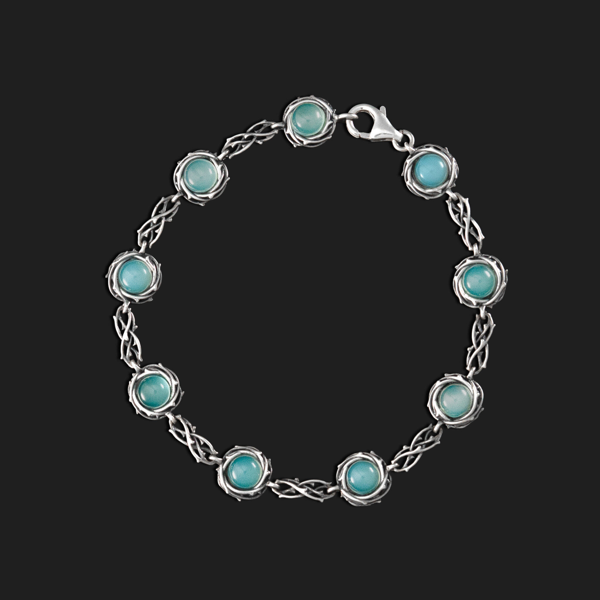 Pieza elaborada en Plata de Ley con Calcedonia aqua natural.